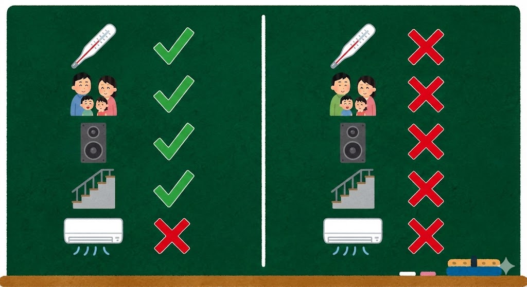 | 空調計画 | 家全体を一定の温度にしたい | 使う部屋だけを冷暖房したい |