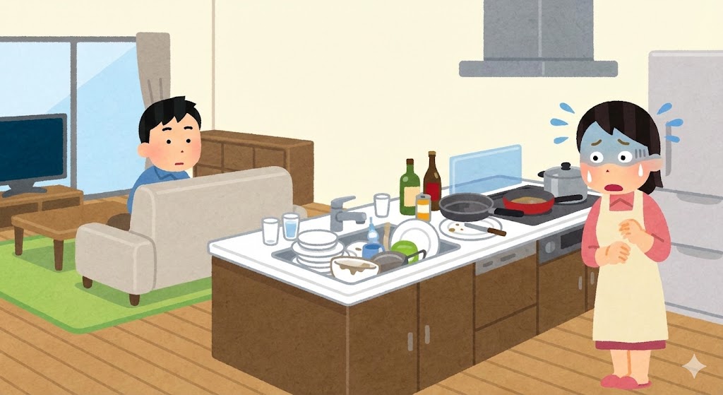キッチン選びで失敗しないための基準は、「料理後のぐちゃぐちゃなキッチンを、リビングから見られても平気か(または即片付けられるか)」です。